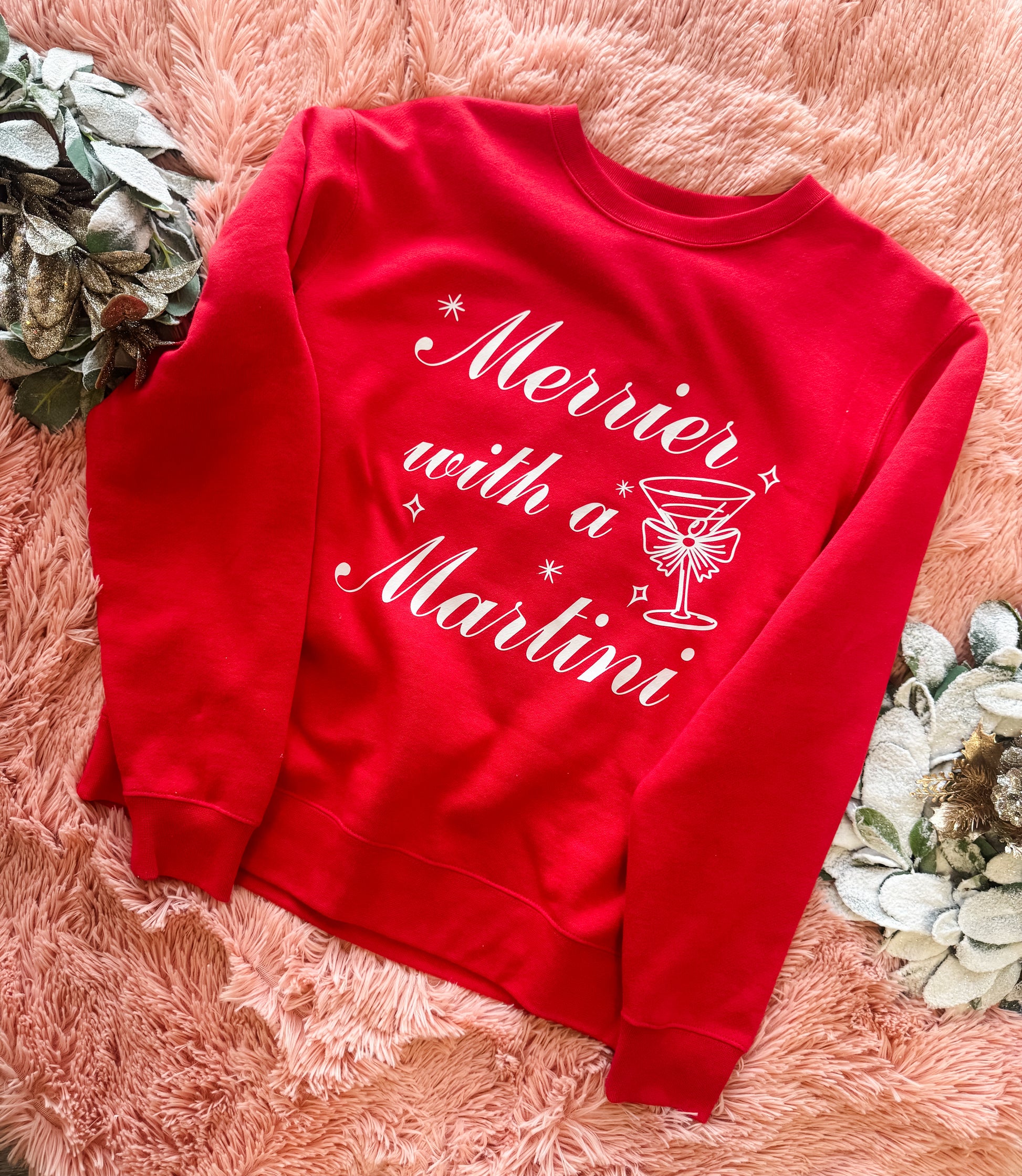 Get ready to be merry and bright with our Merrier with a Martini Crew - Ruby! This cozy crewneck will keep you warm and stylish during the holiday season. Give your wardrobe a festive touch with this playful and quirky addition. Cheers to fun and fashion!